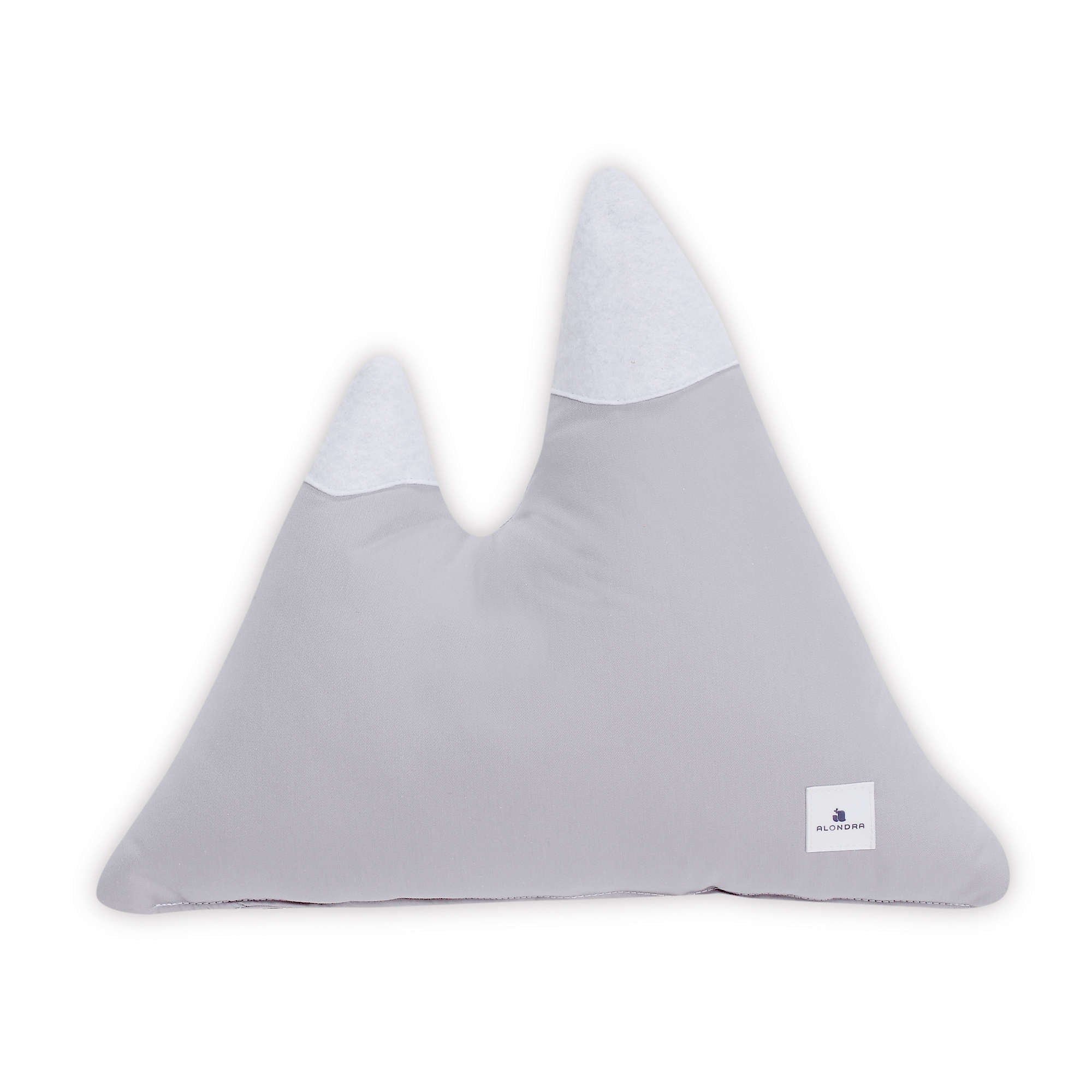 Cojín infantil lavable con forma de montaña, color gris (colección 055 Mint), fabricado en 100% algodón para aportar la máxima suavidad a tu bebé. Puedes completarlo con el resto de accesorios textiles decorativos y textil de cuna de la misma colección, en tonos gris y verde menta. ¡Una colección especialmente para aportar frescura a la habitación del bebé!
