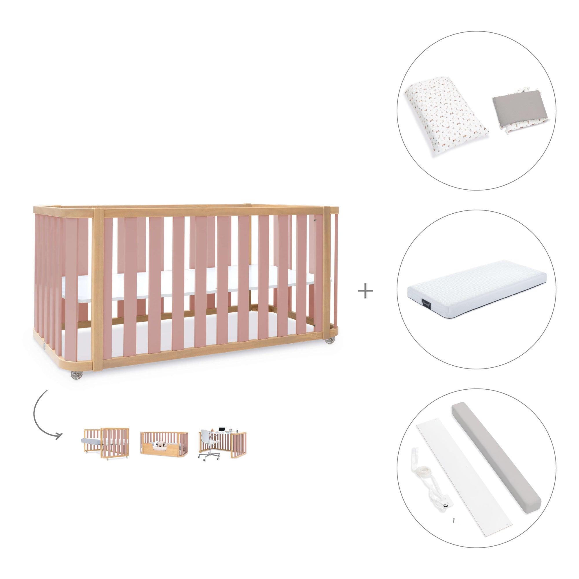 Cuna-cama-escritorio 70x140 cm (3en1) madera/rosa · Crea Plus Due C350-M5059