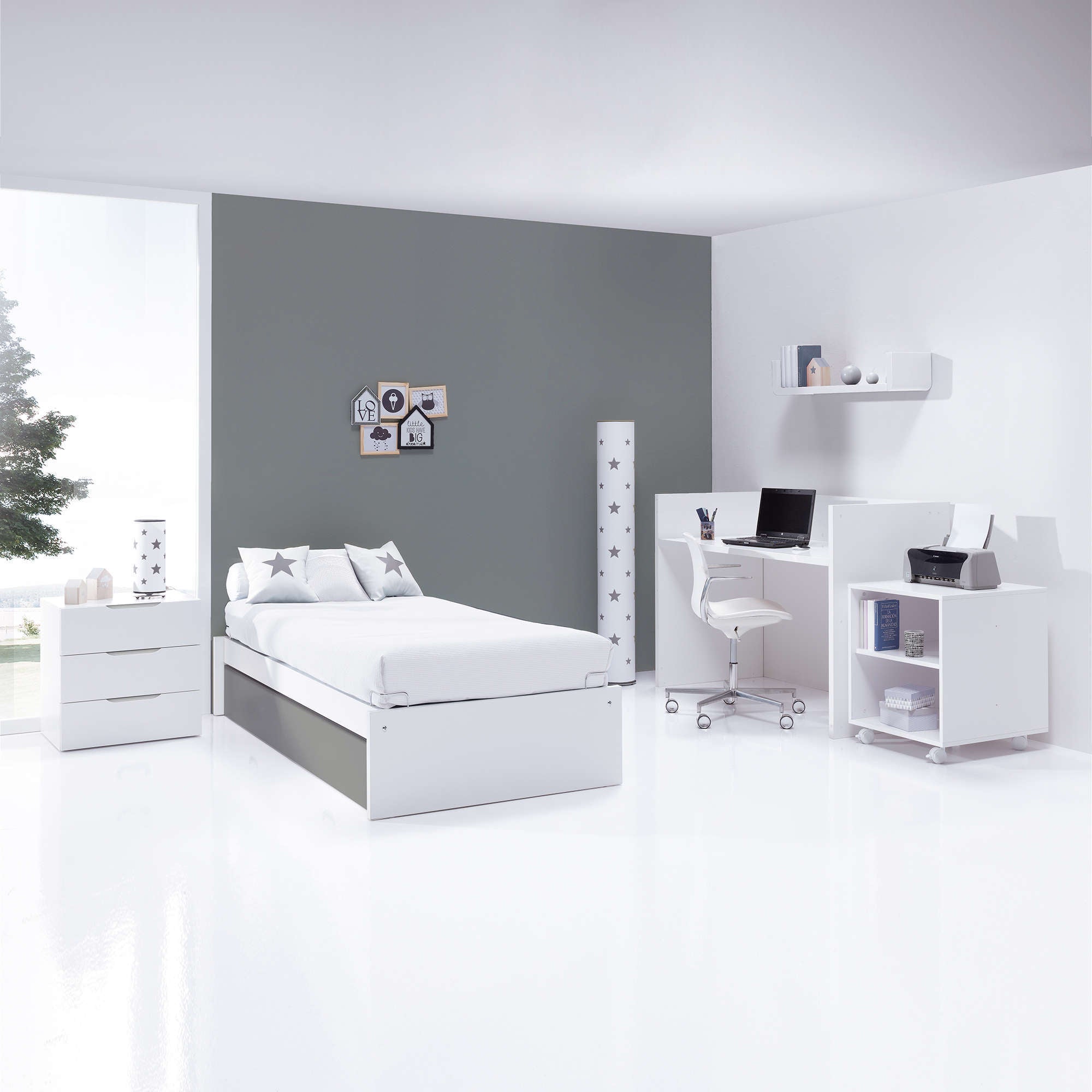 - Convertible en cama júnior de 90x200 cm (con cajones o cama nido), mesita infantil de 3 cajones, escritorio y book estantería (sin necesidad de elementos adicionales).