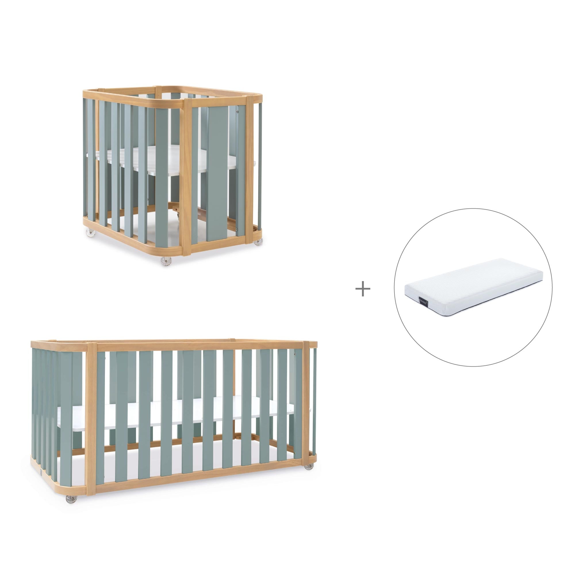 ¡La minicuna-cuna que crece junto a tu bebé! Con el crecimiento de tu bebé en mente, esta innovadora minicuna Crea Plus Tre Eucalyptus todo en uno ofrece una variedad de opciones para adaptarse a cada etapa. Desde los primeros meses hasta la infancia, esta cuna se transforma en minicuna ovalada de 55x70 cm, ampliándose a cuna de 70x140 cm, convirtiéndose después en una cómoda cama infantil del mismo tamaño y, por último, en un práctico escritorio que extiende su utilidad a lo largo de los años. Con un diseño en madera y verde eucalipto, podrás crear un rincón de lo más natural en habitación del bebé. Y por si todavía quieres darle más uso, puedes adquirir el kit opcional (ref. WCO354) para convertirla en minicuna de colecho o el kit opcional (ref. WCO300) para convertirla en cuna de colecho grande.