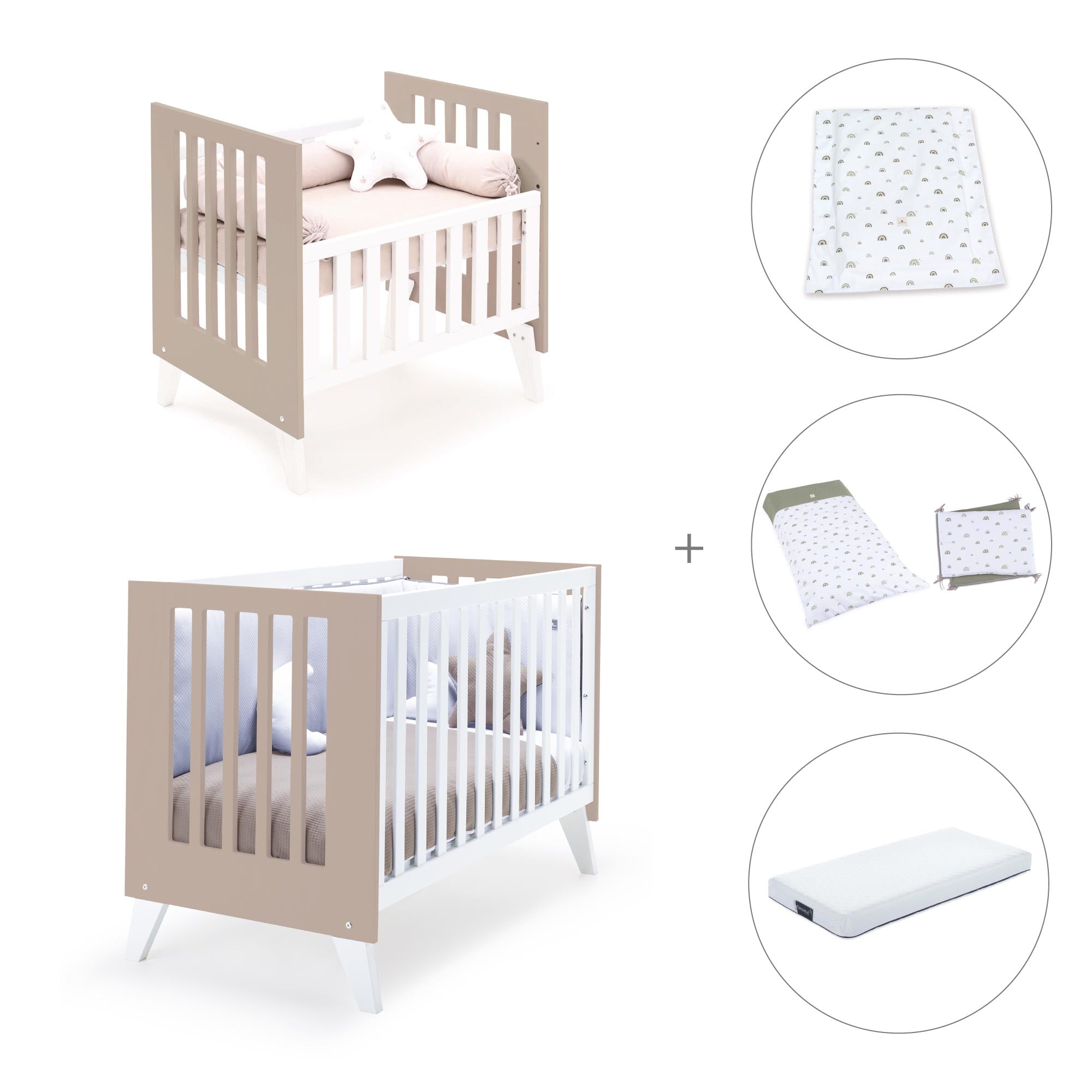 Minicuna y cuna todo en uno (7en1) blanca/beige · Nexo Tre Arena C187T-M7753