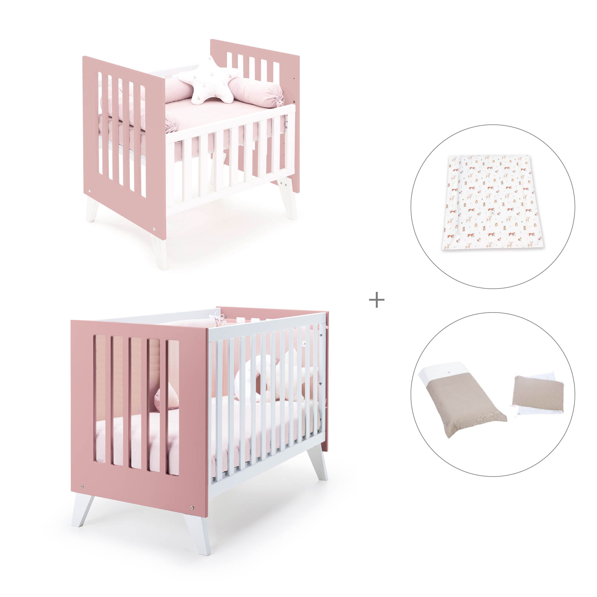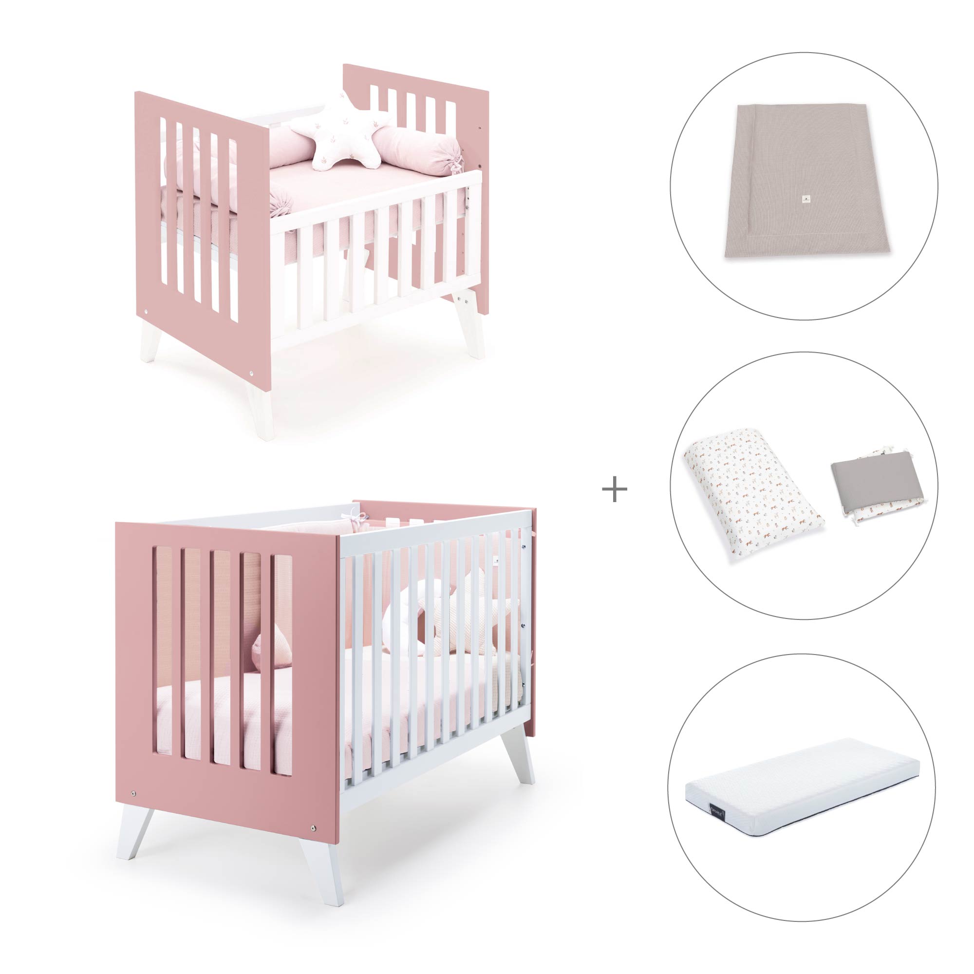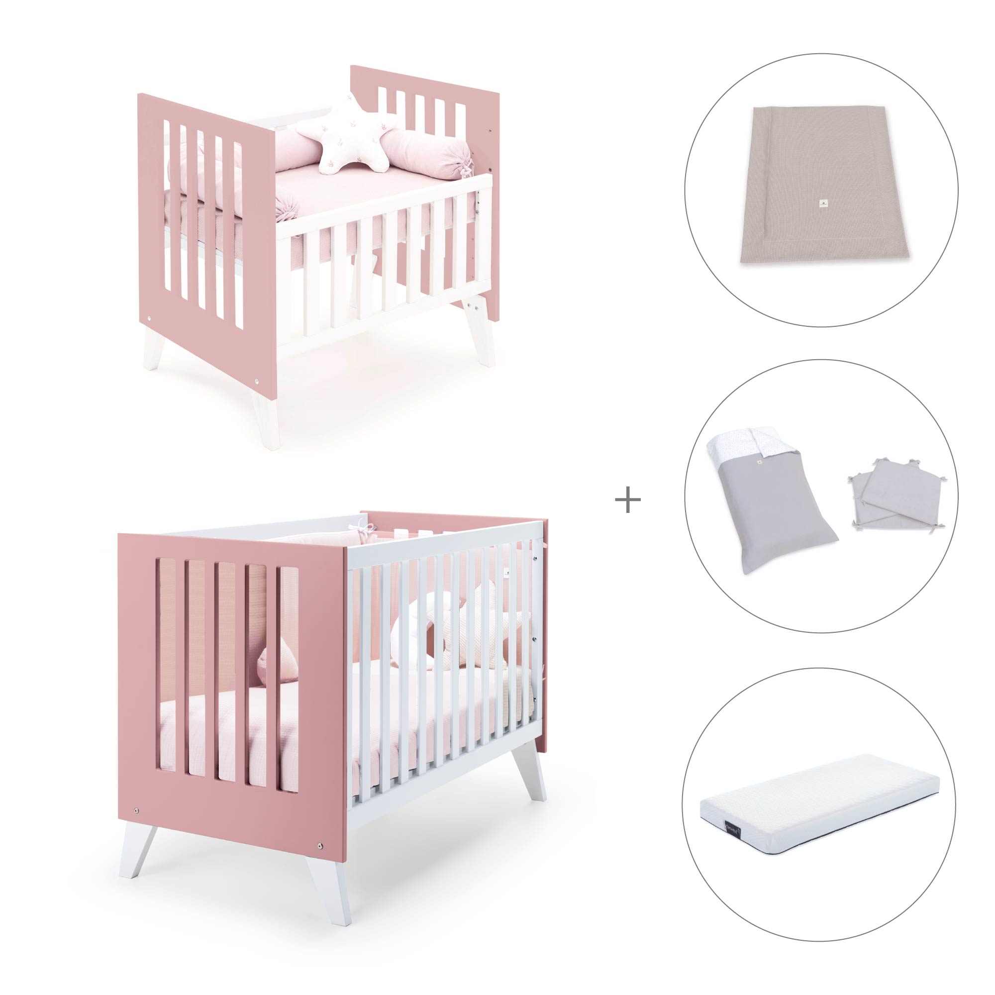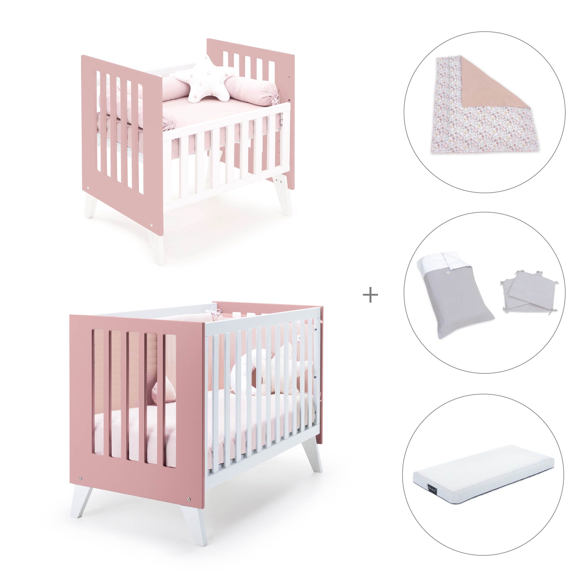 Minicuna y cuna todo en uno (7en1) blanca/rosa · Nexo Tre Quarzo C187T-M7759
