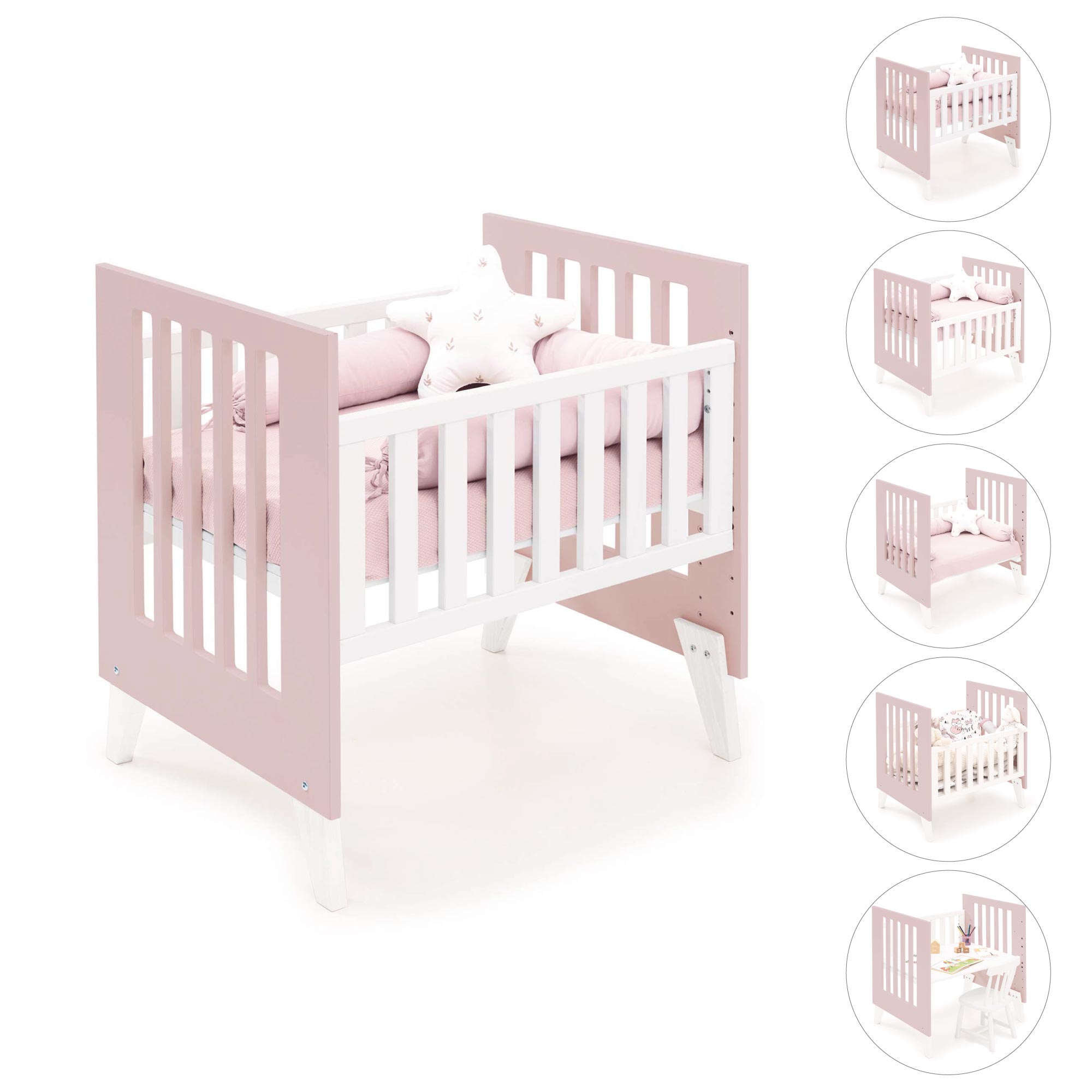 - Convertible en 5 etapas sin necesidad de elementos adicionales: Minicuna de colecho - Minicuna - Sofá infantil - Escritorio - Juguetero.
