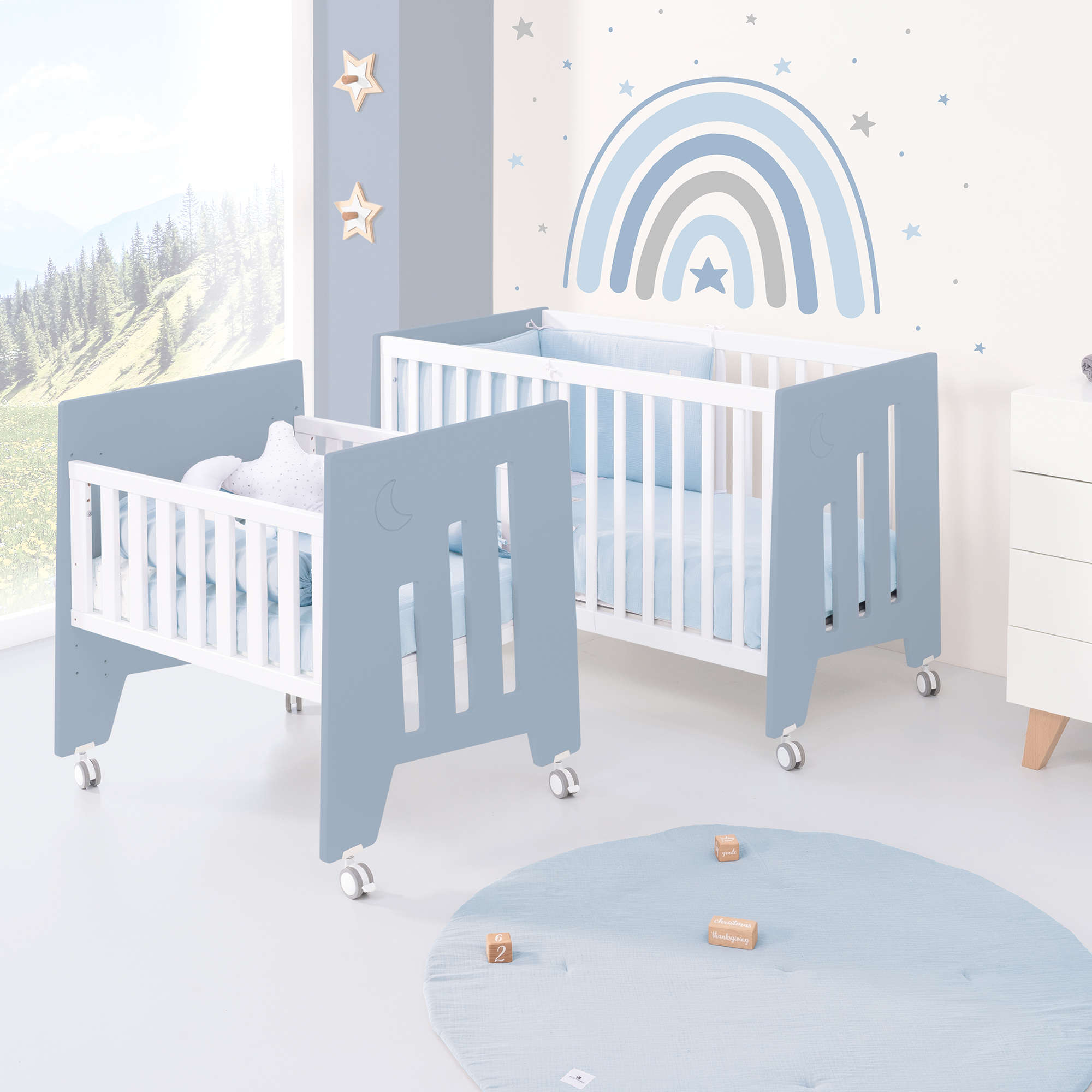 Minicuna 60x80 cm y cuna 60x120 cm (7en1) azul · Omni Tre Blu denim C181T-M7741