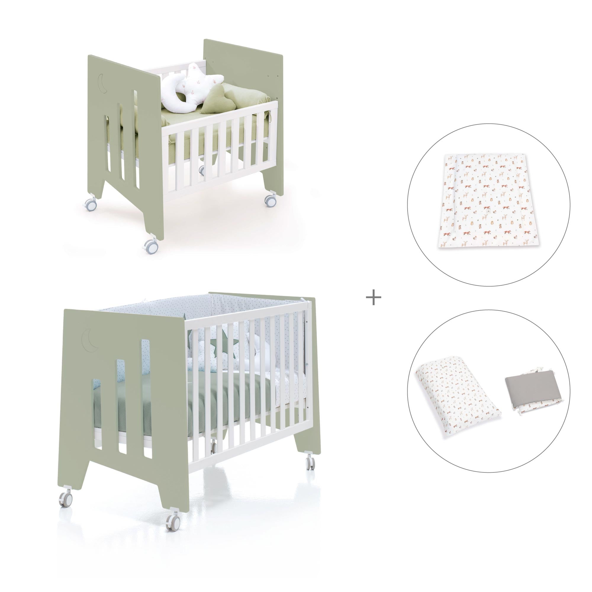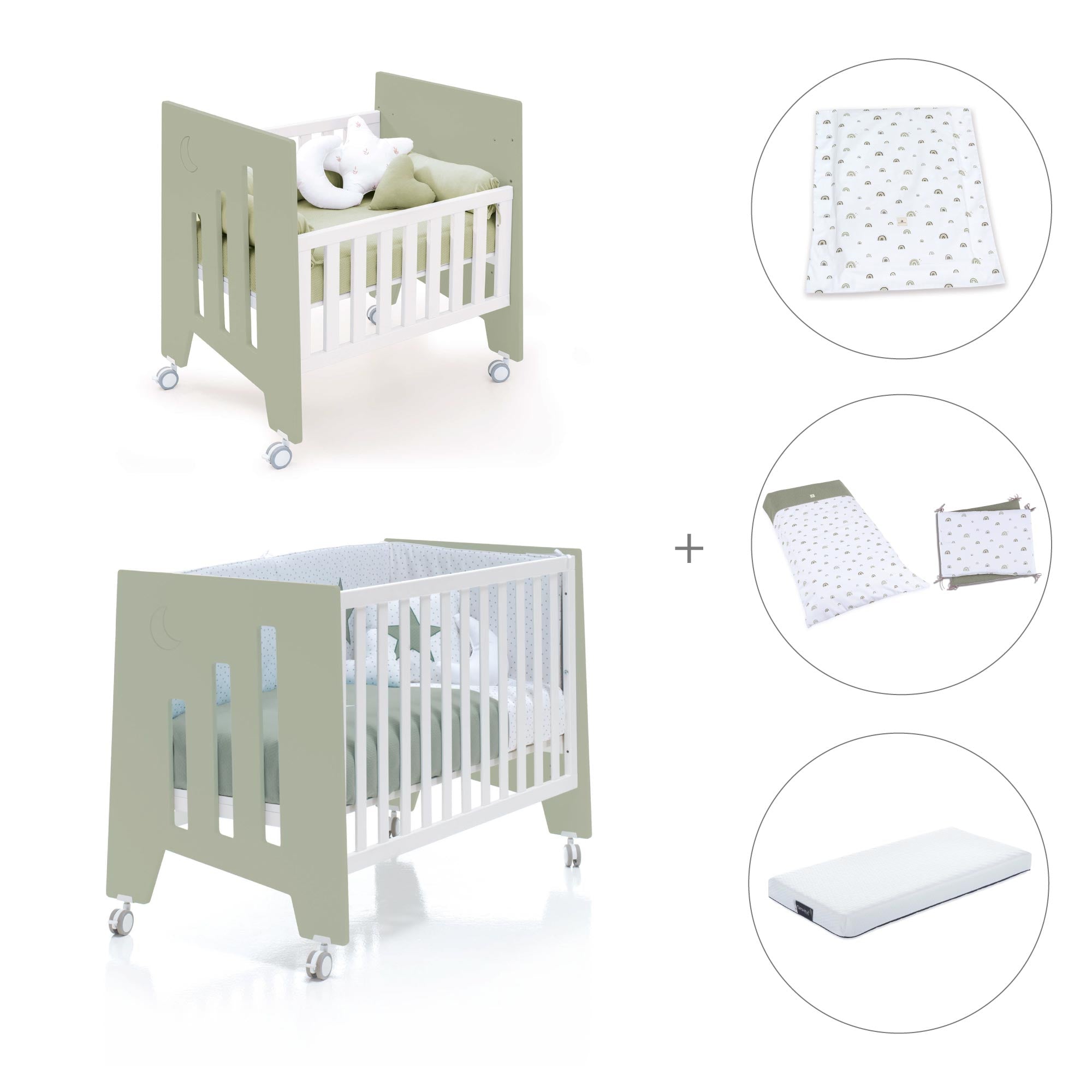 Minicuna 60x80 cm y cuna 60x120 cm (7en1) verde-oliva · Omni Tre Erba C181T-M7756