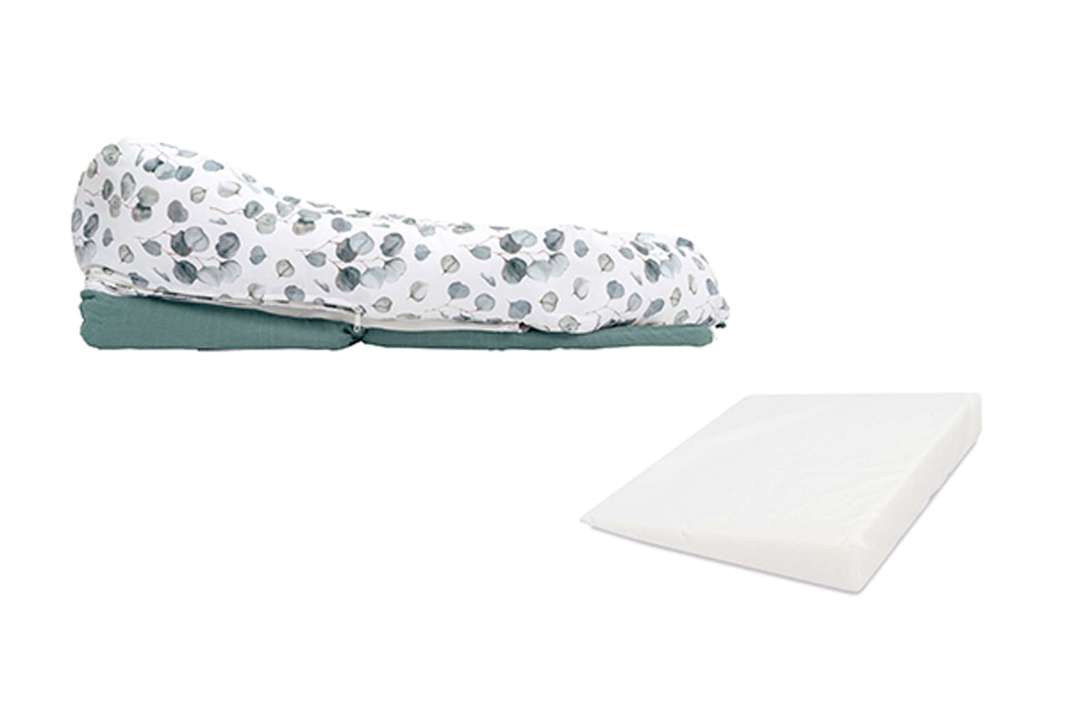 Este nido de colecho incluye una práctica cuña antirreflujo que ayuda a aliviar los cólicos del lactante y facilita la digestión. Su base acolchada y transpirable lo convierten en un entorno seguro y cómodo para el descanso del recién nacido. Con apertura inferior ajustable, acompaña a tu bebé desde recién nacido hasta los 18 meses. Fácil de desmontar y lavar. Se puede utilizar como colecho dentro de la cama de matrimonio o en cualquier otra estancia de la casa. Además, su diseño de hojas de eucalipto aportará brillo y color a la cuna del bebé.